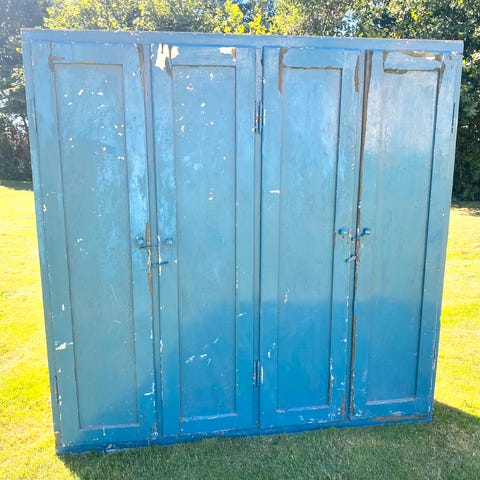 Kinesisk Vintage træ skab i brun farve. Skabet har et klassisk design med dekorative udskæringer og metalhåndtag. Det er velegnet til opbevaring i stuen eller gangen og tilbyder både stil og funktionalitet.