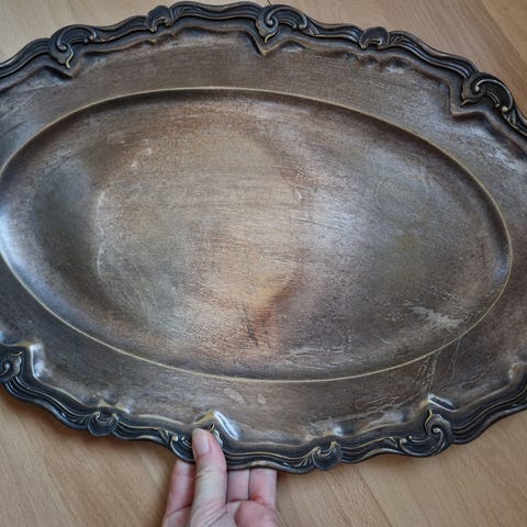 Fad i pletsølv, Ukendt, Super fint gammelt fad i pletsølv på 26 cm i dia