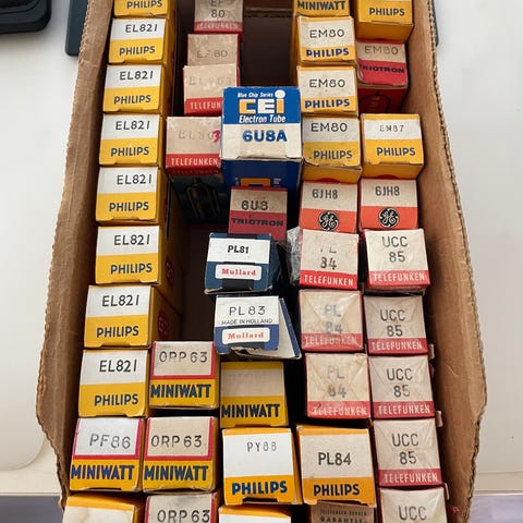 Der er EC90 , EF80 , ECF80 , EL86, EC91, ECC85, 5654 og 12GN7A. Der er 21 stk