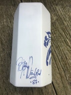 Porcelæn, Vase sekskantet nr. 8744, Nymølle - Bjørn Wiinblad, Bjørn Wiinblad sekskantet vase (nr. 8744) med atypiske blåt mønster. Vasen, der er produceret på Nymølle, er fra 1987 og signeret på bagsiden.