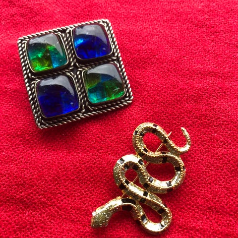 Forskellige fine prydelige brocher, som er Arvet og derfor antagelig fra 1940'erne