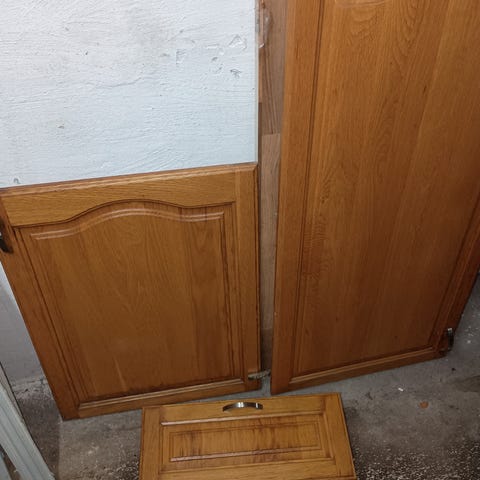 Fronter til 3 underskabe, 2 højskabe, 2 høje 2 delte skabe.