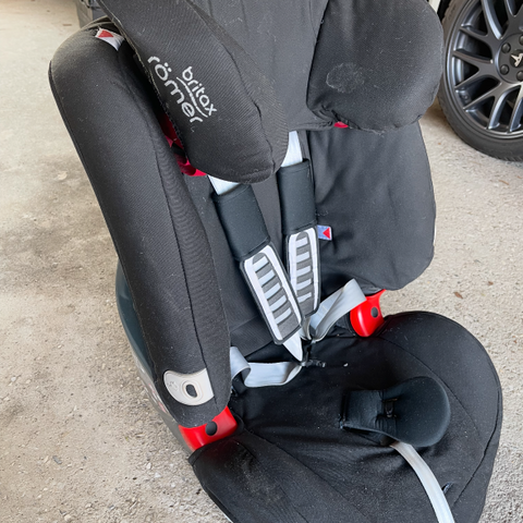 Den er brugt, men er i god stand, næsten som ny. Den har en lille pude agtig foran til at beskytte barnet for at falde ned fra autostolen under kørslen.
