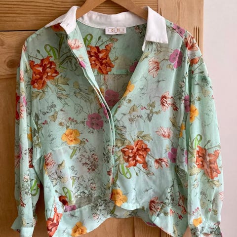 Skjorte, Chico’s design, str. 40, Grøn, sort, Viscose, God men brugt, Fed skjorte, lidt velour, lidt Viscose.