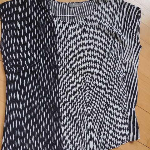 Bluse, Elton, str. 42, Sort, Hvid, Polyester, God men brugt, Herlig og skøn trøje i velour agtigt stof.