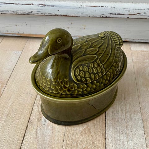 Pateform, porcelæn formet som en and. Mønster blå og hvid
