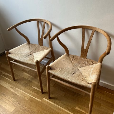 Hans J. Wegner, Ystol i egetræ, nyt flet, Ch24 Wegner Ystol i eg, Sælger denne ene hans j. Wegner Ystol i grøn lakeret egetræ, med patina/brugsspor. Den har fået helt nyt papairgarn/flet. Desværre er ystykket forsøgt repareret og det ses fra bagsiden. Gamle model.