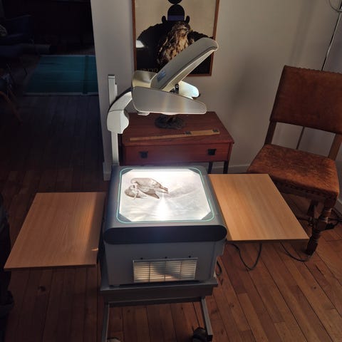 Slide projector med forskellige skabeloner, til jul, fødselsdag halloween, kan sættes ude og lyse på huset, men kan også bruges inden for