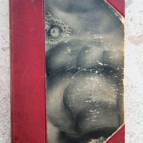 Halvbind af brunt skind og marmoreret papir. Indbundet med originalt for- og bagomslag. (Privatbind).