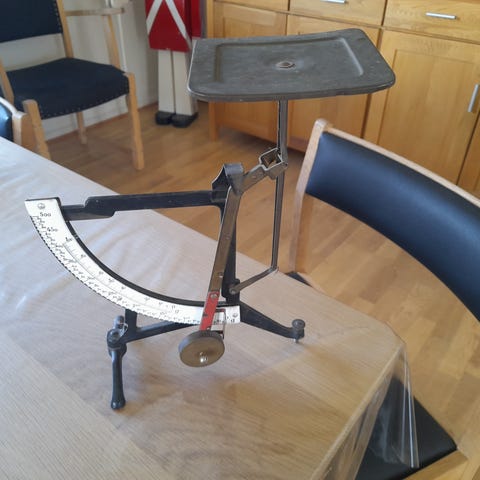 Gammel Vægt fra nedlagt Bageri incl. 4 lodder.