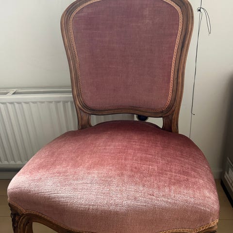 stol, Barok, Smuk stol barok stil. lys mat oliven farvet betræk. ingen brugstegn