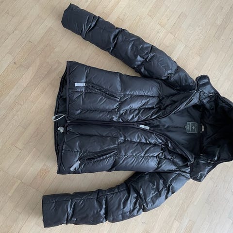 Dame skijakke / vinterjakke str. m i fornuftig kvalitet. Jakken er hvid/lyseblå. “Pels” kraven kan knappes af.
