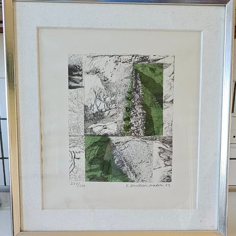 Grafisk særtryk, Erland Knudssøn Madsen, motiv: Hoved af skyer, b: 59 h: 42, Fint og uden revner - dog med håndterings- folder ( se fotos) derfor prisen