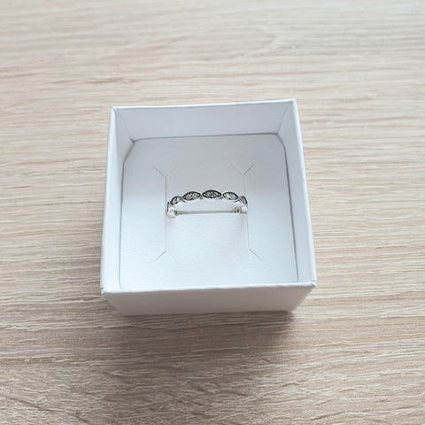 Elegant ring fra Dige Designs i 18K rosa forgyldt sterling sølv, som er dekoreret med klare zirkoner. Justerbar og passer derfor alle fingerstørrelser. Nikkelfri, helt ny og fin gaveindpakning medfølger.