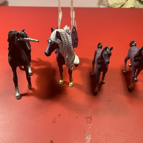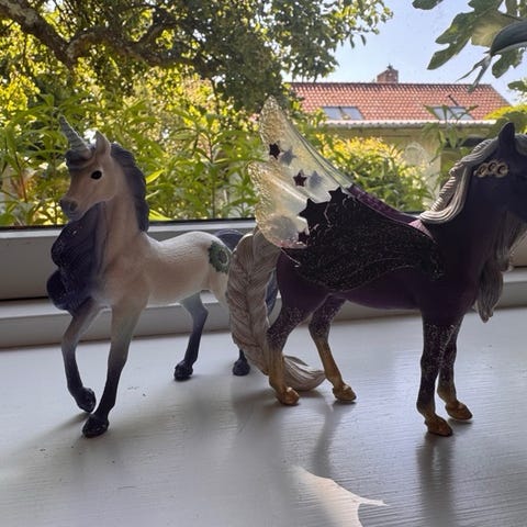 Dyr, Winged rainbow unicorn , Schleich, Schleich bevinget regnbueenhjørning. Navn skrevet på bunden, men ellers i rigtig god stand.