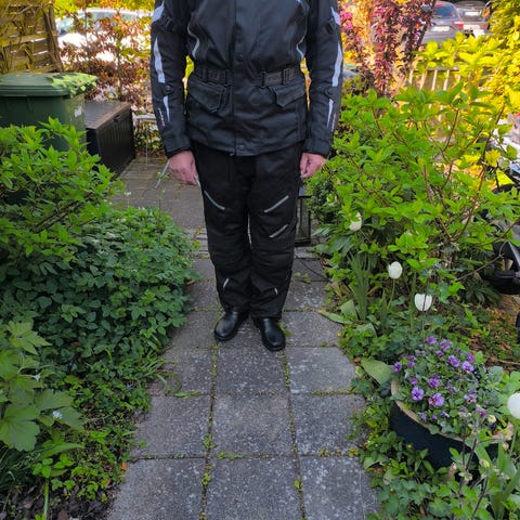 Brugt 2 sommer sæsoner. Uden skader. Udtagelige thermo indlæg. Inkl. Protektorer. Undtaget ryg. Lyst og behageligt sæt i sommersolen. Ok ventilation.