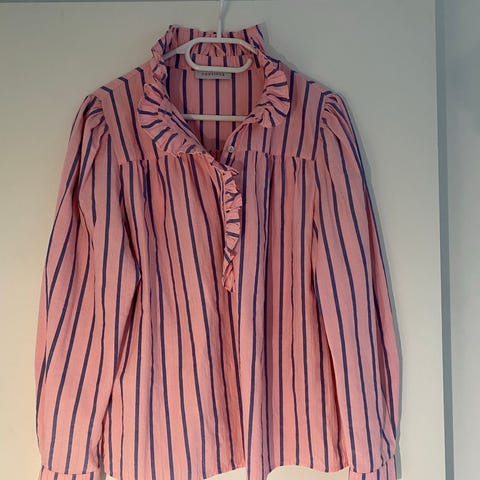 Med lille puf på ærmet, flæse og elastik i ærmet.