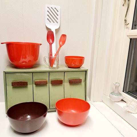 ROSTI skåle og tilbehør i orange/rød.