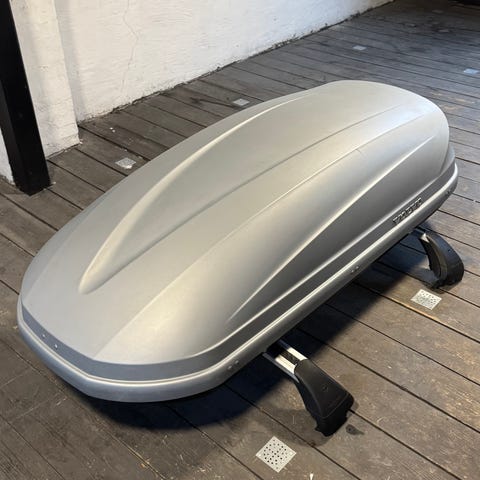 Oprindeligt købt til vores Volvo, hvorfor der står “Volvo” på i stedet for Thule.