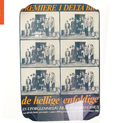 Original filmplakat fra tredserne. Håndmalet tekst på foto. Ca 2x2 meter virkelig fed. Har nogle huller, kan med fordel klæbes op, men også hænge som den er