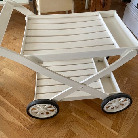 Serveringsbord i hård plast. H: 65 L: 68 B: 45 i pæn stand og fungerer perfekt.