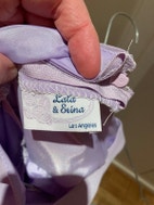 To søde festkjoler i lyslilla, som vi brugte til vores to piger på 2 år og 8 år, da vi blev gift. Fine sløjfer og strutskørt. Den mindste kjole har en lille plet ved halsrundingen, som man næste ikke ser, mens den store kjole har flere pletter - deraf den lave pris. Ingen af kjolerne har været til rens, så pletterne kan muligvis gå af. Sælges samlet for 200 kr eller hver for sig tim 120kr. Nypris 800 kr pr styk.