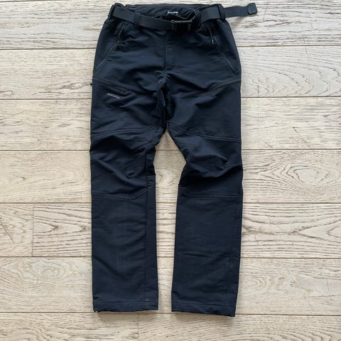 str L/40, outdoor, elastik i livet bagpå, fast foran, med bæltestropper, livvidde 72 cm uden træk, 86 cm når den er trukket ud, stiklommer i hver side, lårlommer med lynlås i hver side, ekstra slidstykke indvendig på hver ben forneden, kan justeres med velcro forneden ved ankler, elastisk stykke bagpå haser, for bedre bevægelighed, robuste og komfortable. indvendig benlængde 78 cm. Har ikke været brugt. Sender gerne, DOG IKKE med fiks færdig.porto oveni