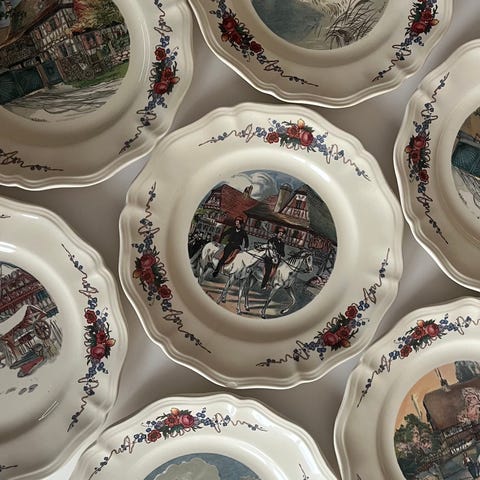 Fajance, Tallerken , OBERNAI, OBERNAI" Alsace-tema Henri Loux Scener Sarreguemines Faienceries ~ Fransk vintage antik