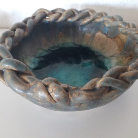 Keramik skål med ører, Rakkerhuset, Stor rustik retro skål med store ører og på fod...