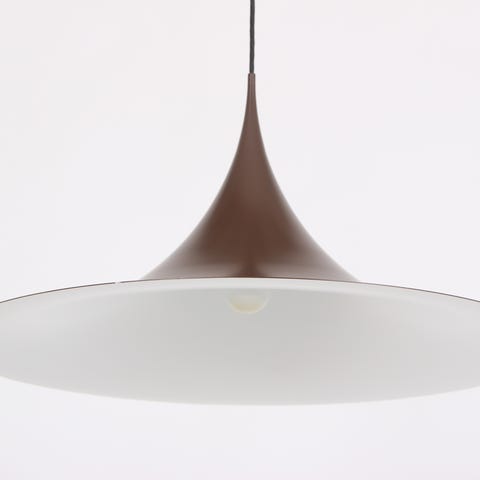 Semi pendel fik stor succes i 1980'erne og var på det tidspunkt det bedst sælgende danske designprodukt og vandt international anerkendelse og en ikonisk status. Den karakteristiske Semi med den bueformede skærm skaber et blødt kegleformet lys, der er perfekt over spisebordet eller køkkenbordet. Jeg har flere Semi pendler, i forskellige størrelser og farver.