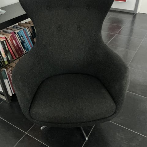 Søren Lund, 407, Lænestol m. vippefunktion, Søren Lund lænestol med vippefunktion m/ lås og drejesokkel i satin krom samt tilhørende skammel i koksgrå Margrethe-uld og nakkepude i sort læder. Højde 102 cm, sædehøjde 42 cm, bredde 78 cm, dybde 90 cm, sædedybde 53 cm. Fodskammel - højde 41 cm, bredde 57 cm, dybde 45 cm. Står som ny, næsten ikke brugt. Nypris kr. 36.670,00.