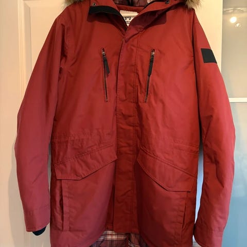 Varm vinterjakke brugt meget lidt, da den var købt til datteren der skulle have været på efterskole. Sælges fra et røgfrit hjem. Se billede for nærmere oplysninger om jakken. Sender gerne mod betaling af porto. Nypris for jakken var 525kr.