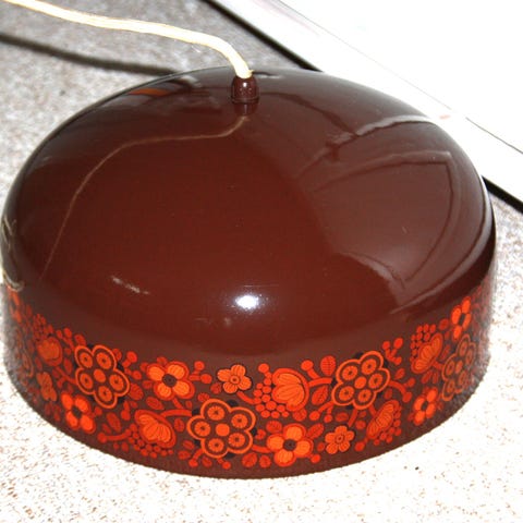 Anden loftslampe, Fog og Mørup, Flot gul med grønne blomster. Hvid indeni.