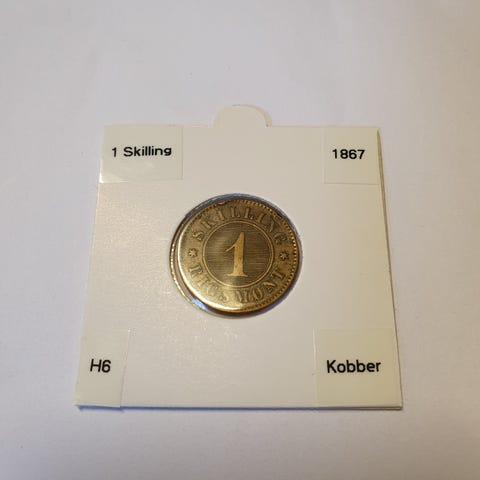 1 skilling, pænt mønt i kapsel