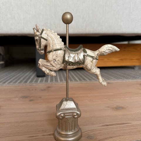 Hest, Metal/Træ, 80 år gl., Dreng forsøger at tøjle balstyrisk hest.