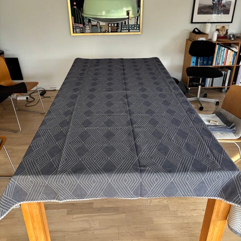 Dug, Georg Jensen Damask dug med snefnug motiv, kan vendes, så den har en blå og lyseblå nuance.
