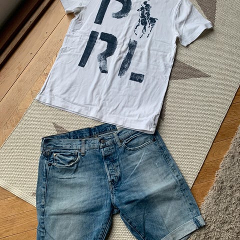 RL Denim&Supply str. 32 Sandfarvet, med mange fede detaljer. To store lommer samt for- og baglomme. Ingen defekter, dyr, røg eller skyllemiddel. 100% bomuld. Købt i N.Y. City