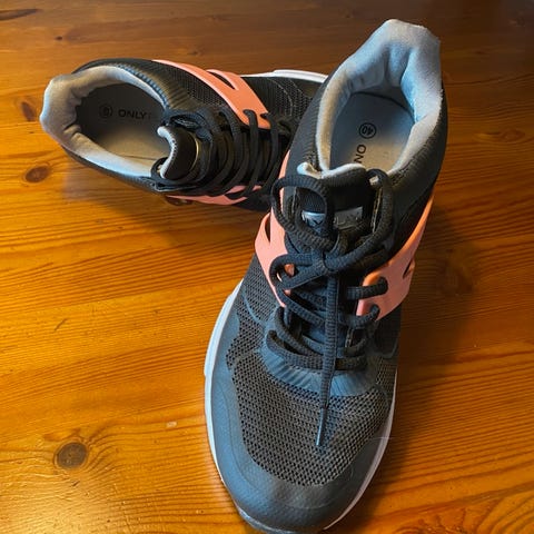 Sportssko fra New Balance. Str. 41,5. De har fået et hul på højre yderside og er lidt slidt i inderhælene. Men de kan sagtens benyttes og har mange km i sig ind over sommer. Lyse og kan kommes i vaskemaskine. Fra ikke ryger hjem. Afhentet eller plus 65 kr. til forpakning og forsendelse med tracking. Sender straks ved betaling og så er varen forventeligt fremme ca. 1-3 dage senere med tracking.