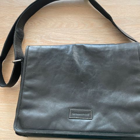 En taske som elektriker har brugt. Kraftig kernelæder, har fået et par syninger