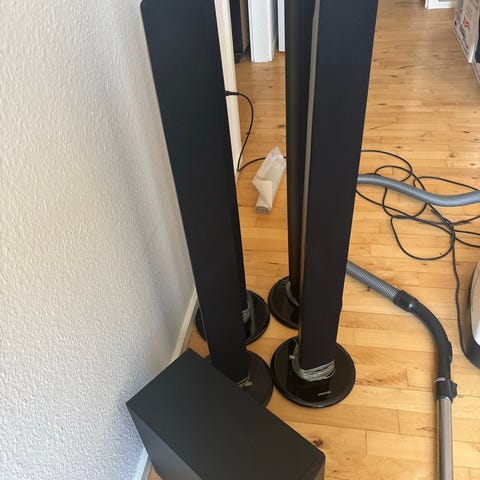 Samsung hjemmebiografsystem HT-X720 med subwoofer, 2 højtalere som enten kan stå eller hænge, fjernbetjening og manual. Har desværre ikke plads til det mere. Pænt og velholdt uden hakker/ridser. Nypris 3.900 kr.