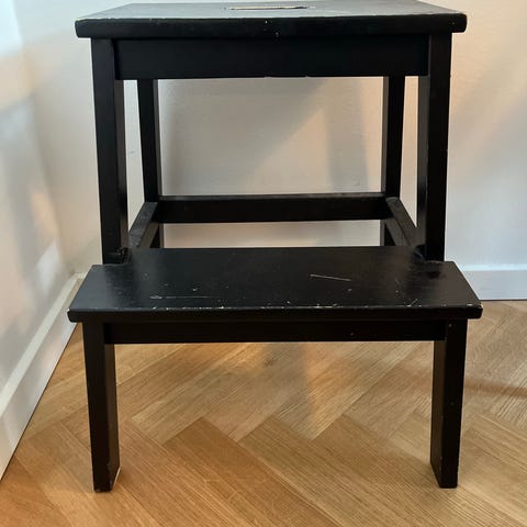 Fin taburet, der er spraymalet lyserød. Brugt af 1 pige. Har mindre brugstegn, men er generelt i pæn stand.
