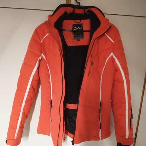 Blå Skijakke til dame med varm foring. Alle nødvendige detaljer : snefang, liftkortlomme på ærmet , indvendig lomme med lynlås , netlomme, to almindelige lommer. Mulig at snøre ind forneden.