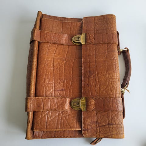 lædertaske - attachemappe 20x35x48cm. Tasken har let brugsslid udenpå og et par kuglepenspletter indeni - ellers superfin stand.