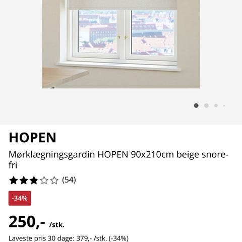 Website: https://jysk.dk/gardiner/rullegardiner/morklaegningsgardiner/moerklaegningsgardin-hopen-140x170cm-beige-snorefri
