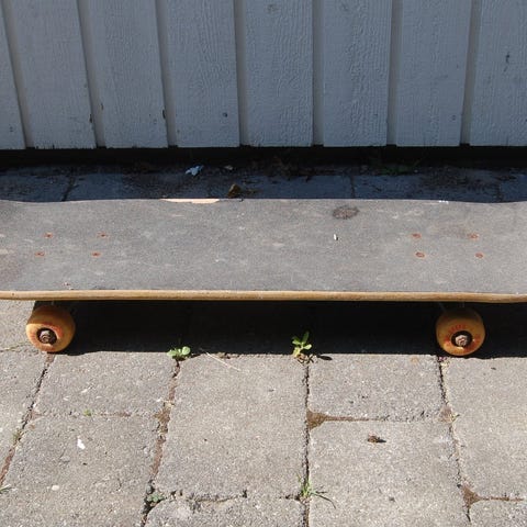 Super flot blå Atlanta skateboard med røde hjul. Den har en max. Belastning på 100 kg. Er næsten ikke brugt.