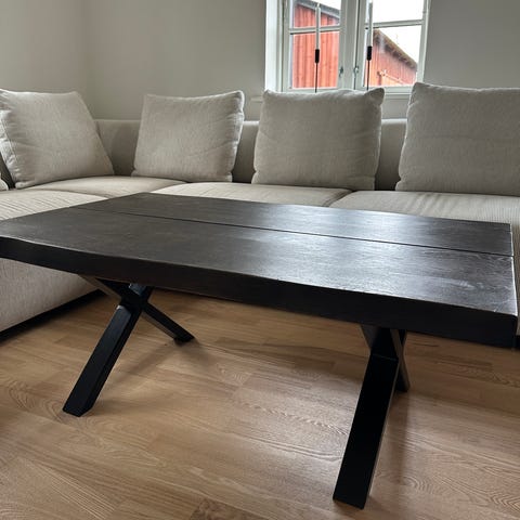 Snedkerbord - Massivt plankebord med "svævende" bordplade. Nøddetræ - formentlig valnød.
