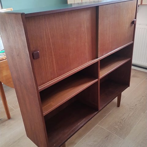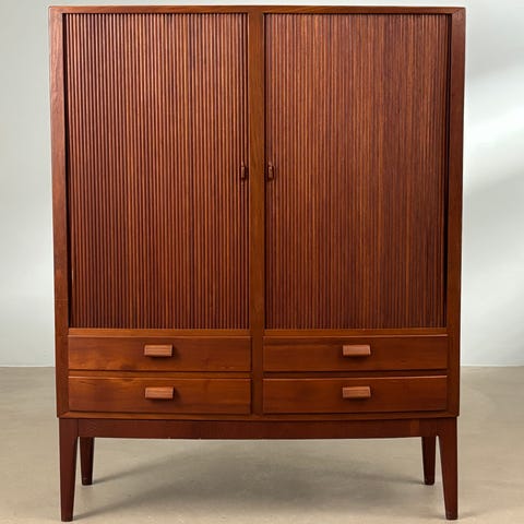 Hans. J. Wegner, linnedskab i teak. I fin stand med enkelte brugsspor. Meget lækre snedkerdetaljer og smukt lyst træ indvendigt. BHD: 99,5cm, 129,4cm, 33,4cm Søgeord: Skoskab, vitrineskab, skænk. opbevaringsskab, entremøbel.