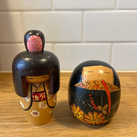 2 gamle japanske kvinder i biscuit, 5-6 cm. høje.