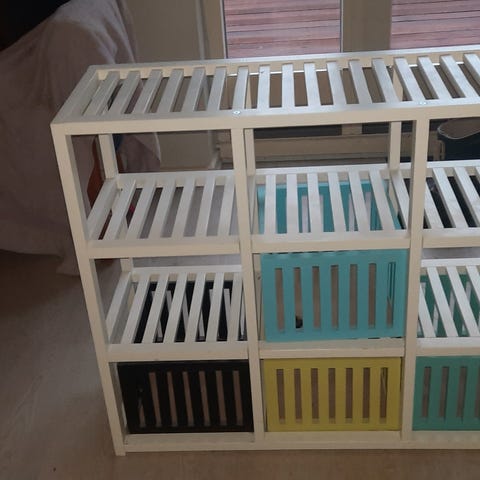 IKEA reol som jeg har tilskåret og malet grøn og guld✨