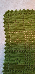Dækkeserviet, Mellemlægsserviet, flakon, eller hvad man nu vil bruge den til. Fint håndarbejde. Hjemmelavet. Ca. 28 x 34 cm. Intakt og fin. Varm mørk grøn farve. Absolut i god fin og intakt stand. Fra ikke ryger hjem. Afhentet eller plus 58 kr. til forpakning og forsendelse incl. tracking. Sender straks efter betaling og varer er normalvis fremme på maks. 2-3 dage.